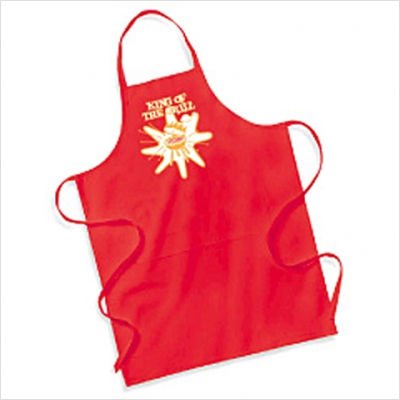 dskingapron Shown in red Let guests know Who's the boss of the patio with this King of the Grill apron? This item features 0.75 lengths, heavy weight with wrap around ties. One size fits all. Features: -Full lengths apron. -Tie Straps. -Quality material. -Constructed of cotton and polyester. -Made in the USA.emergency car battery jump starter barking dog security system gas barbecue sale